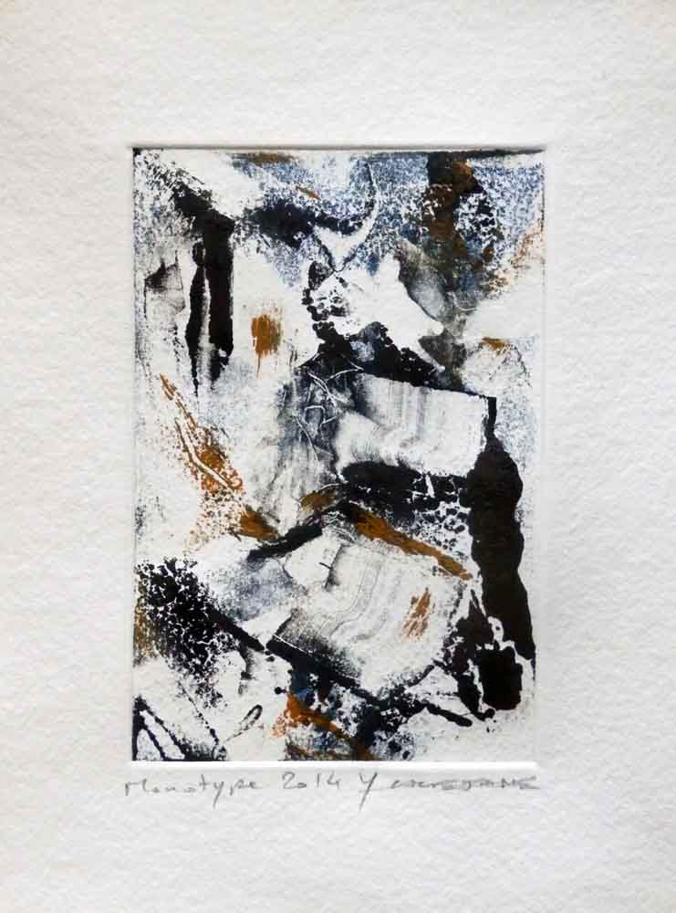 Le monotype est une impression d'une épreuve unique. Il n'est pas numéroté comme une gravures, c'est une estampe. Le support est lice, plexiglas, verre, métal et l'artiste peint à la gouache, à la peinture à l'huile, ou avec des encres typographiques. |